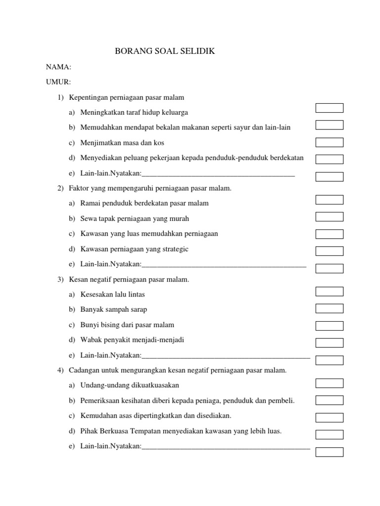 Borang Soal Selidik Perniagaan Pdf